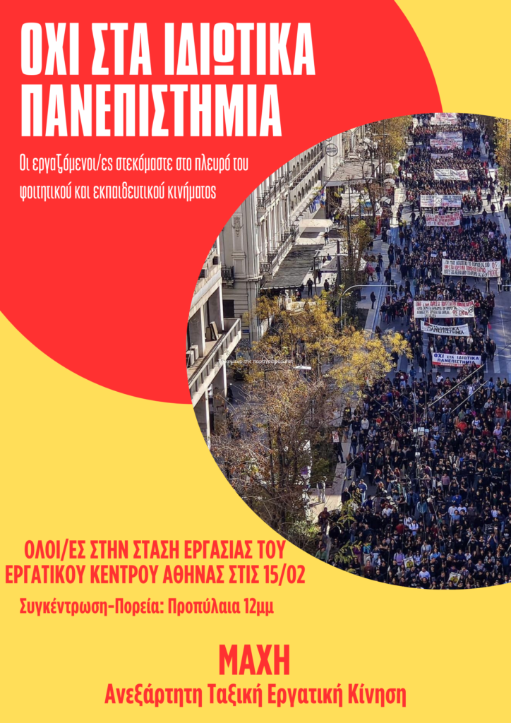 Όχι στα ιδιωτικά πανεπιστήμια – Κάλεσμα για την στάση εργασίας του Εργατικού Κέντρου Αθήνας